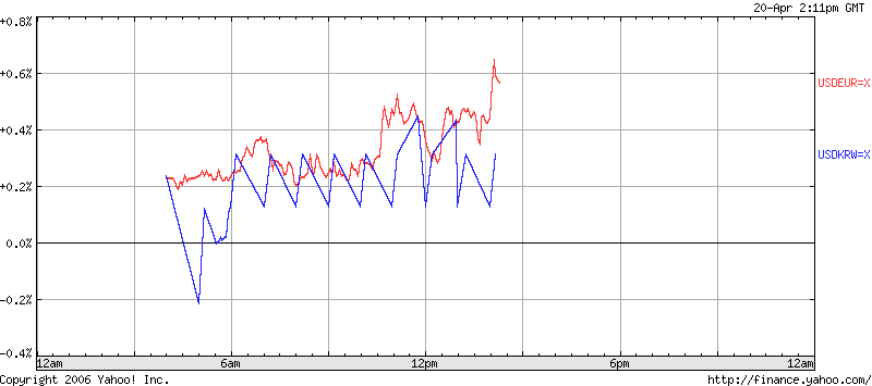 というわけで、今回は韓国関連ネタということで、2ちゃんなどではだいぶ前から有名な「ドル-ウォンレートの不自然な動き」についてまとめてあるページを紹介しましょう。
